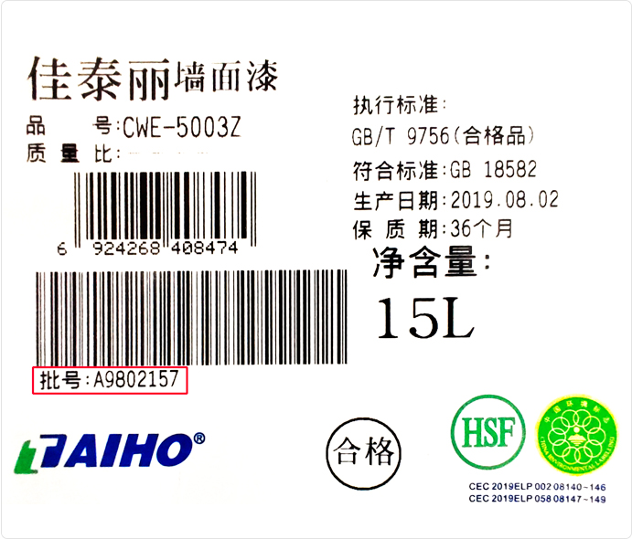 爲(wei)有(yǒu)效防止假冒侵權産(chan)品(pin),維(wei)護消費者權益,大(da)寶漆所有(yǒu)産(chan)品(pin)都有(yǒu)産(chan)品(pin)标識碼,供所有(yǒu)消費者能(néng)明确方(fang)便地辨别出及(ji)購(gòu)買到(dao)真正的(de)大(da)寶漆塗料,并可(kě)作(zuò)爲(wei)打擊假冒侵權物(wù)品(pin)的(de)依據。以(yi)下昰(shi)大(da)寶漆塗料産(chan)品(pin)的(de)防僞介紹: