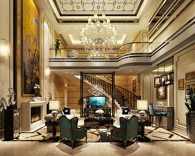 歐式(shi)客廳頂部(bu)喜用(yong)大(da)型燈池,并用(yong)華麗的(de)枝形吊燈營(ying)造(zao)氣(qi)氛。們(men)窗上半部(bu)多(duo)做成(cheng)圓弧形,并用(yong)帶有(yǒu)花(huā)紋的(de)石膏線(xiàn)勾邊。室內(nei)有(yǒu)真正的(de)壁爐或假壁爐造(zao)型。牆面一(yi)般使用(yong)高(gao)檔藝術(shù)壁材(cai),或優(you)質(zhi)環保的(de)藝術(shù)塗料,如造(zao)型多(duo)樣的(de)大(da)寶L’opera樓貝進(jin)口藝術(shù)塗料,來烘托豪華效果。
