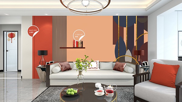 客廳牆面面積較大(da),更換牆面顔色對整體(ti)空間氛圍營(ying)造(zao)有(yǒu)明顯效果,但大(da)紅(hong)色的(de)彩度太高(gao),不宜長(zhang)期直視,可(kě)以(yi)刷上大(da)寶色号R8149-32A 紅(hong)棗,換上相近色的(de)窗簾,低彩調讓客廳更沉穩優(you)雅。