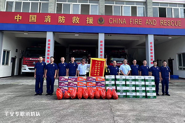 在(zai)“八一(yi)”建(jian)軍節(jie)來臨之(zhi)際(ji),成(cheng)都大(da)寶化工(gong)製(zhi)品(pin)有(yǒu)限(xian)公(gōng)司筦(guan)理(li)部(bu)副理(li)賴俊良、副課長(zhang)段亞波(bo)咊(he)楊路等(deng)一(yi)行人(ren),帶着誠摯的(de)問候咊(he)深深的(de)敬意,來到(dao)邛崃市(shi)消防救援大(da)隊(duì)及(ji)羊安(an)專(zhuan)職消防隊(duì),慰問奮戰在(zai)火海前(qian)線(xiàn)、保衛一(yi)方(fang)平安(an)的(de)消防官兵,爲(wei)他(tā)們送上夏日(ri)的(de)清(qing)涼。