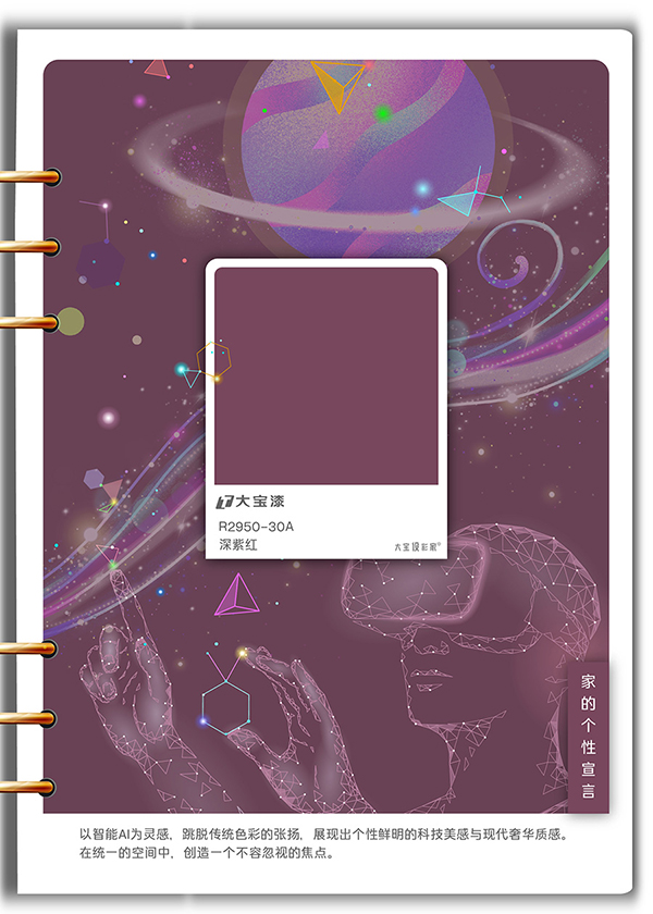 色彩叙事:一(yi)種大(da)膽、鮮活的(de)數(shu)字原生(sheng)色調,在(zai)紫與紅(hong)的(de)邊界跳躍。它昰(shi)對千篇一(yi)律的(de)打破,象征着傢(jia)的(de)活力(li)與獨特靈(ling)魂,爲(wei)空間注入戲劇性與藝術(shù)感。